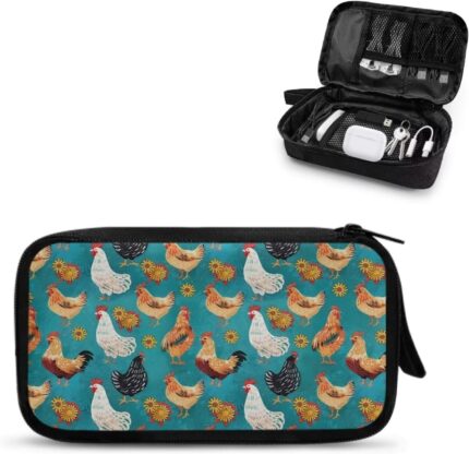 Rooster Print Cable Organiser Bag, Electronic Acce…