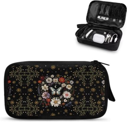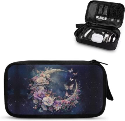 Floral Moon Butterfly Print Cable Organiser Bag, E…