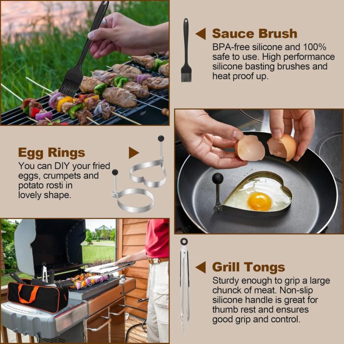 【Great Gift Choice】This practical barbecue tools set with beautifully designed gift box is ideal gift choice for Fathers Day, Thanksgiving or Christmas. It includes all the tools needed for yard, outdoor, and camping barbecues an ideal gift for friends, lovers, or family members who love cooking or barbecue and camping enthusiast.