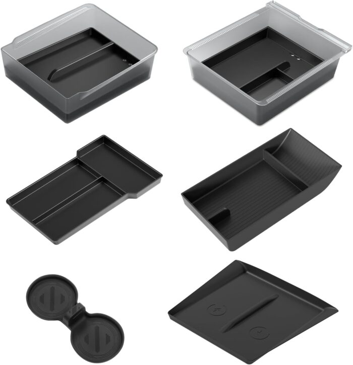 YOU WILL GET: It’s made according to original car size and perfectly fitted. Including central console storage box and mat, armrest storage box and mat, cup holder insert and wireless silicone charging mat