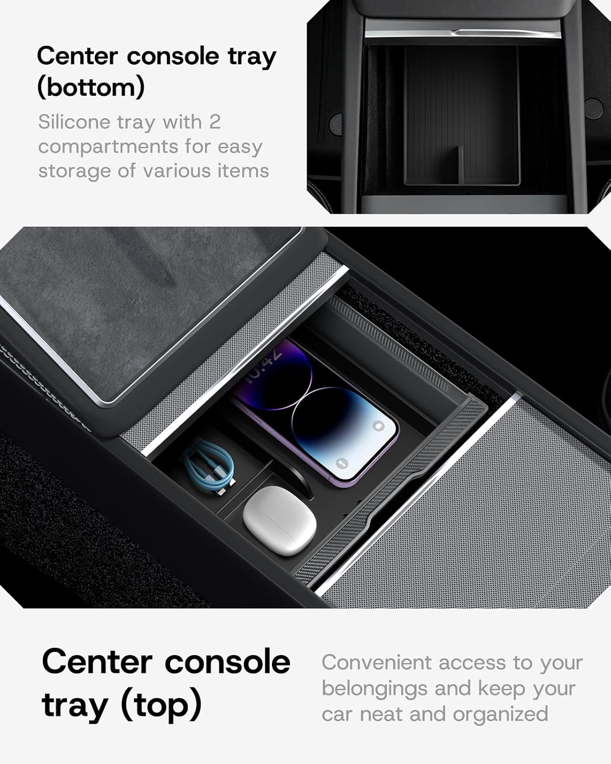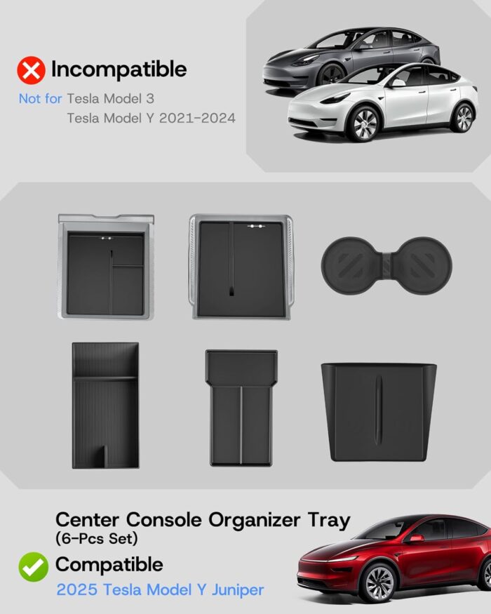 CUSTOMIZED DESIGN: The center console organizer is fit for Tesla Model Y Juniper 2026 2025