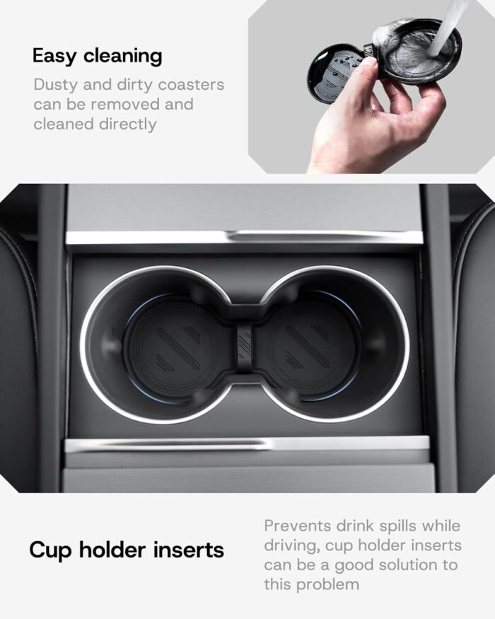 EASY TO CLEAN: The model y juniper storage accessories is rinse with clean water and wipe dry. You can clean them in a few seconds. Dust, beverages, etc. often contaminate these storage areas. Cleaning the interior of the car can be troublesome, but it’s more easier with these accessories
