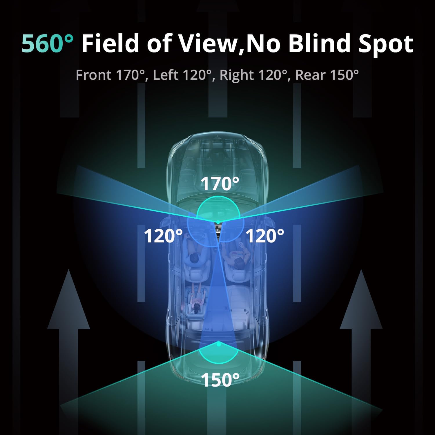 [4 Channel Dash Cam] 3K 4 channel dash cam Compared with the traditional 2K dash cam, capturing crystal-clear license plates even at night! With a 170° front camera, dual 120° side, and 150° rear, you’ve got complete 560°coverage that leaves no blind spots unmonitored. All four cameras record simultaneously, giving you foolproof evidence of any incident.The side cameras feature a detachable magnetic mount, allowing you to switch between 3 channel (4K+1080P*2) or dual dash cam (4K+1080P) modes.