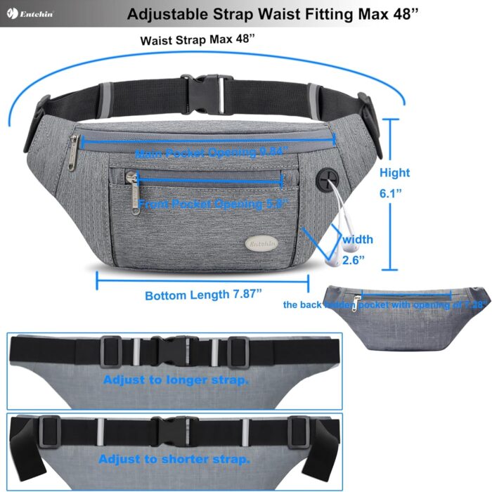 【Adjustable & Versatile Belt】The fanny packs purse has an adjustable strap, with strong and reliable buckle, fitting ranges maximum up to 48 inches/ 122 cm (including the waist bag). It can be wear as a fanny pack, crossbody bag, shoulder bag or a small sling chest bag.