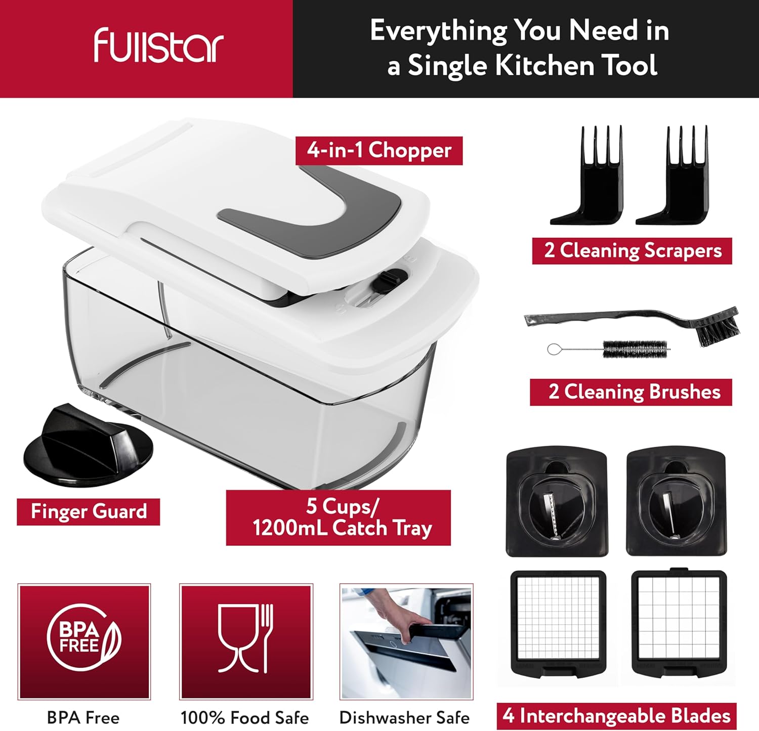 A Kitchen Essential – Whether you’re a novice cook or a seasoned pro, the Fullstar Food Chopper is a must-have in any kitchen. It’s versatile, easy to use, and dishwasher safe. Please read the instruction manual provided with the Fullstar food chopper closely before use.