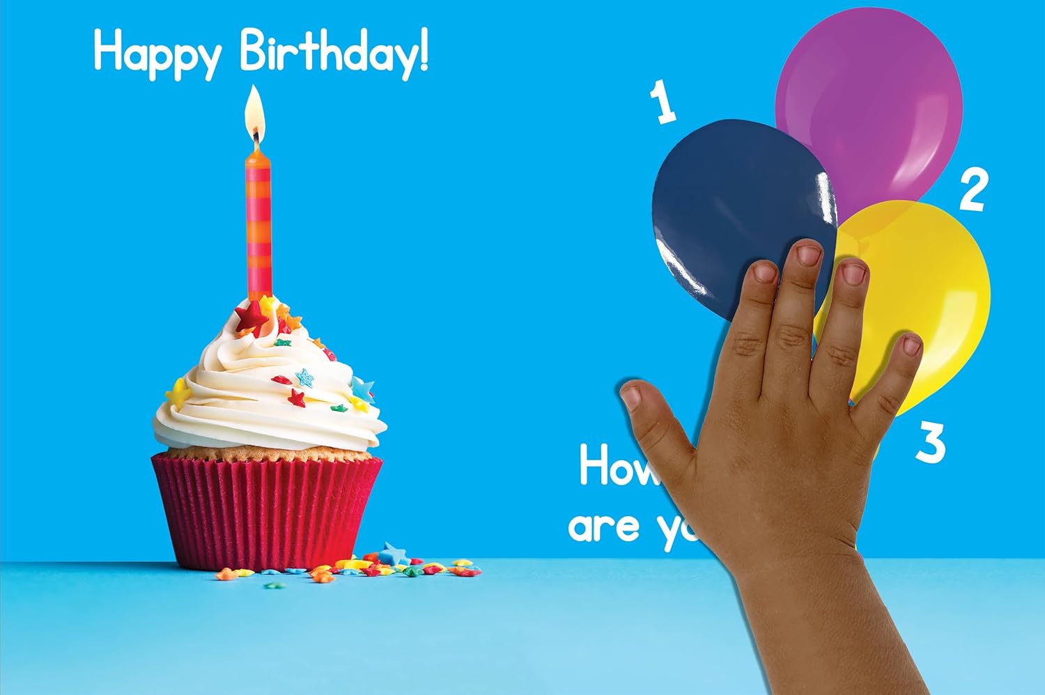 Features a silicone touch and feel element on the cover and various touch and feel elements on each spreadInteractive fun and tactile learning in this children’s book will engage young readers Toddlers will enjoy the different touch and feel elementsReal photography showing birthday party fun, such as party hats, goody bags, gifts, donuts and more are included in this toddler board bookShort sentences and fun first words will keep baby’s attentionAdd a new baby book to a child’s library today!