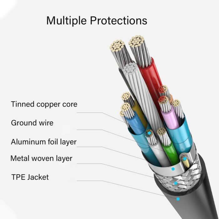 【Multi-shielding & Durability】: The combination of gold-plated connectors, bare copper conductors, and foil & braid shielding provides superior USB 3.0 cable performance, error-free data transmission, and fast charging speed; molded strain relief connectors for durability and grip treads for easy plugging and unplugging