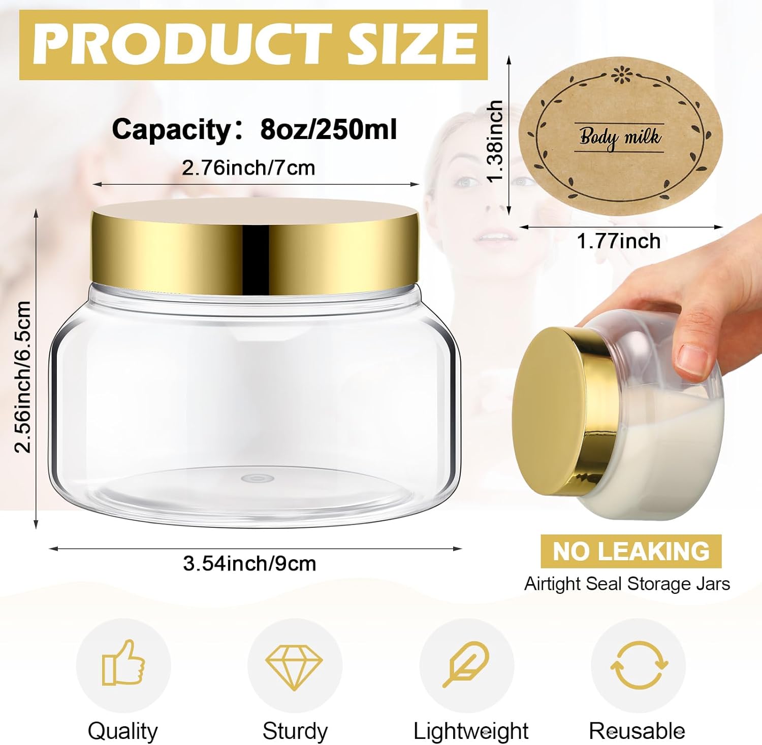 Suitable Size: the size of lotion jars with lids is about 3.5 x 2.44 inches/ 8.9 x 6.2 cm, about 8 oz in capacity, portable and compact, can be easily put into your cosmetic bag or luggage; They don’t take up too much space, small and lovely, convenient for your daily application