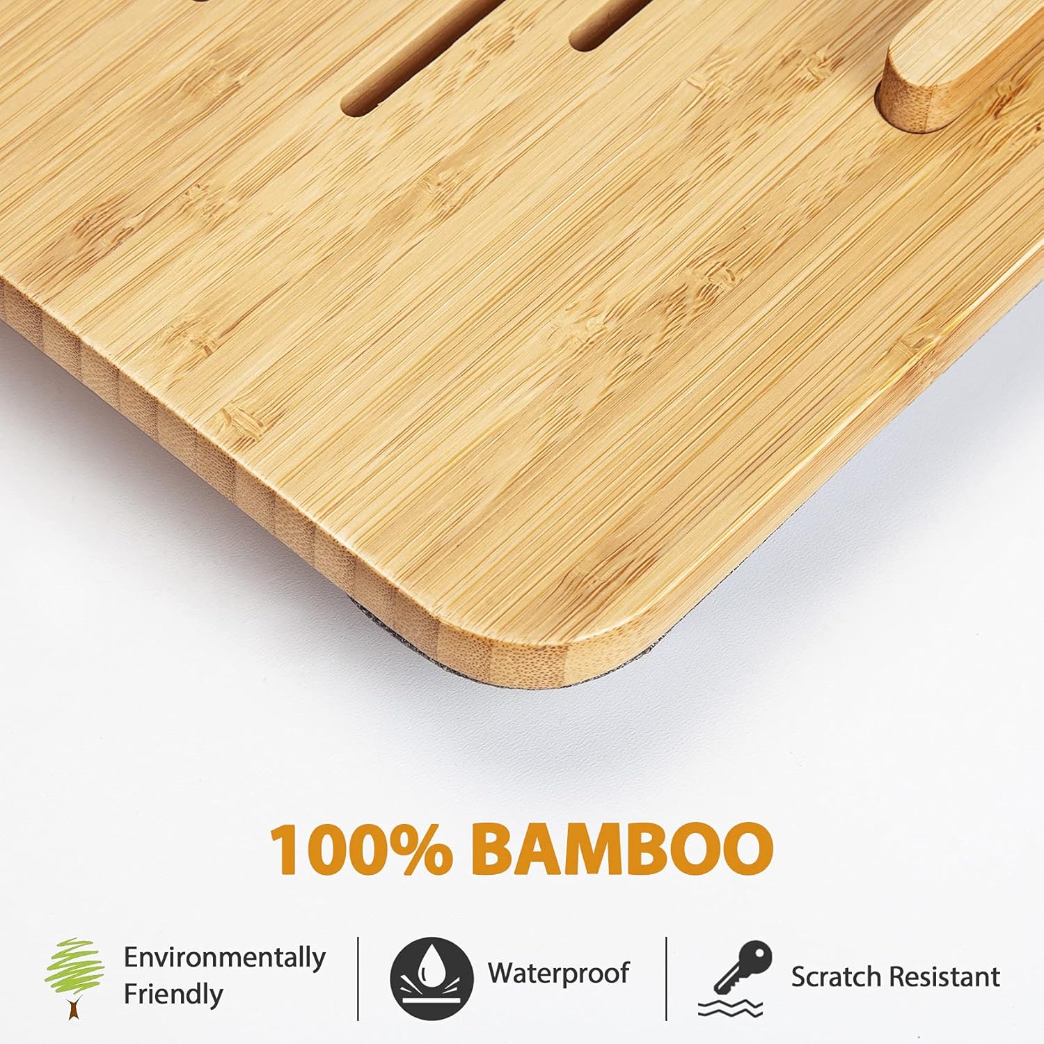 Spacious Design – Measuring 20.51″ wide and 11.41″ deep, our bamboo lap desk comfortably fits most laptops up to 15.6″. Extra room for accessories ensures the laptop stand fits laptops up to 17”