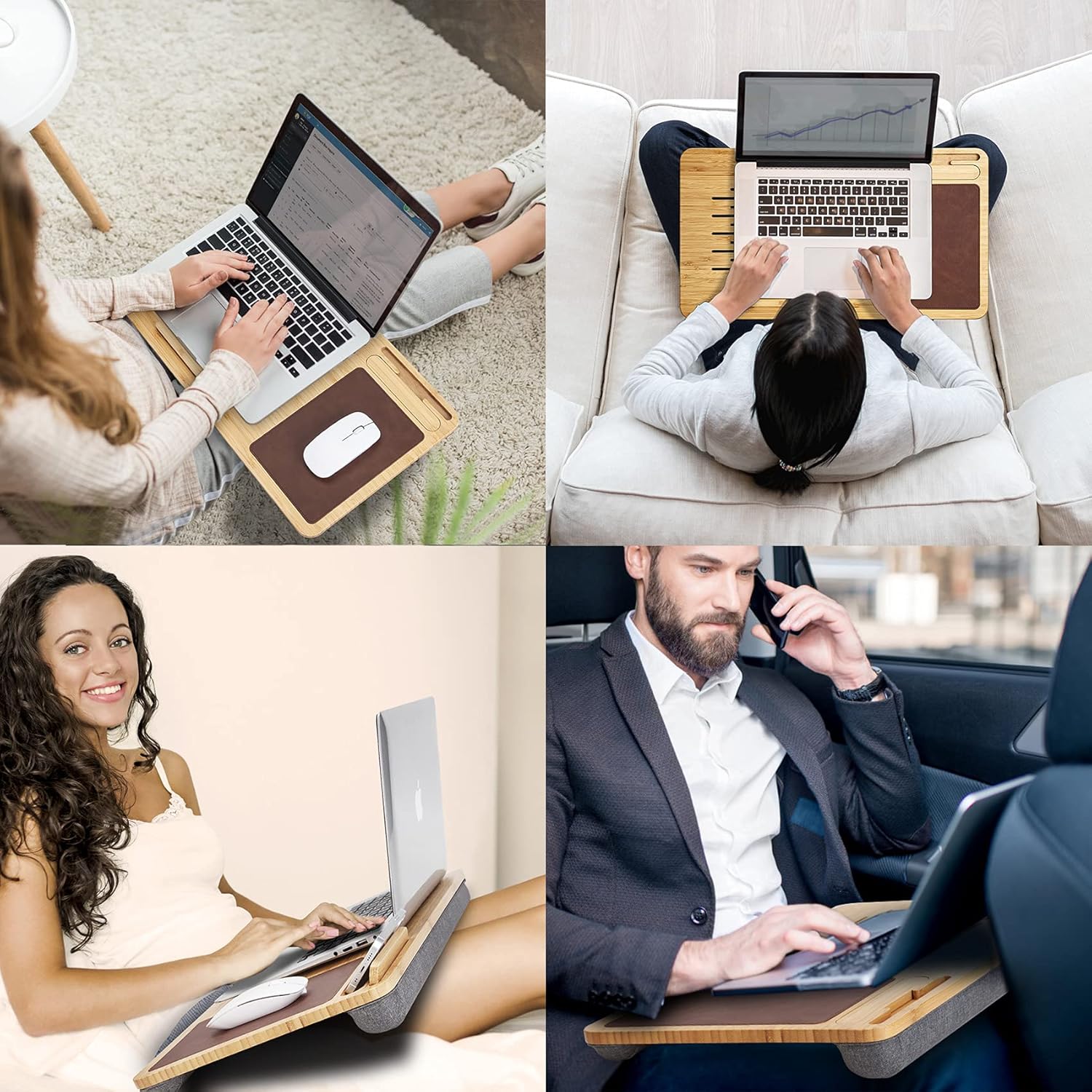 Multifunctional Lap Desk – This foldable lap desk is built with smooth panel and dual bolster cushions for comfort and support. It can be used while lying on bed, sofa or car. You may use it as a laptop lap desk, laptop stand, lap tray.