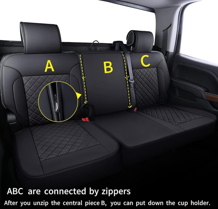 Unzip the middle piece of the rear backrest cover to use the cup holder