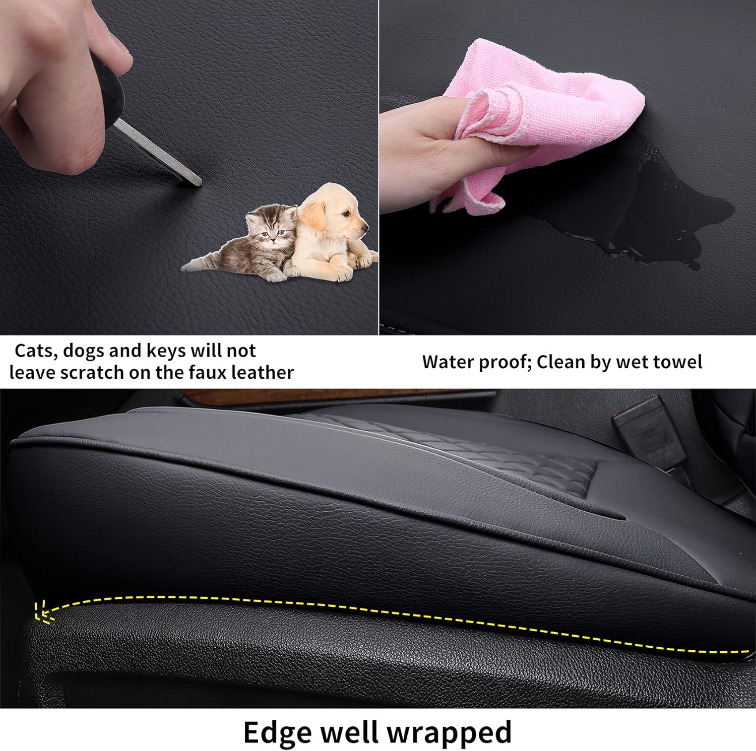 Customers give positive feedback about the seat covers’ appearance, with one noting they look like factory leather seats, and they effectively protect the factory seats. The fit, quality, installation, functionality, and slip resistance receive mixed reviews, with some customers finding them comfortable and durable while others report they don’t fit well and deteriorate quickly. Moreover, customers express dissatisfaction with the value for money, describing it as a waste of money and time.
