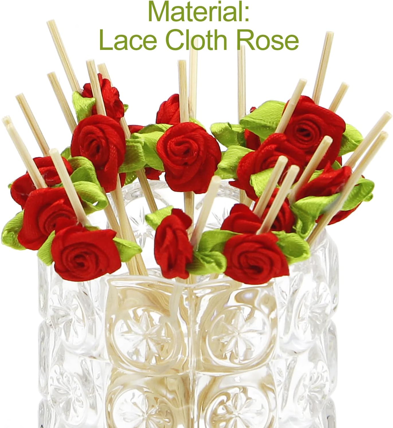 SPECIFICATIONS: These cocktail toothpicks consist of bamboo sticks and lace cloth red rose flower decoration heads. The total stick is 4.7 inches long and 3.5 inches usable; Diameter 0.078 inch thick body; 100 counts per bag
