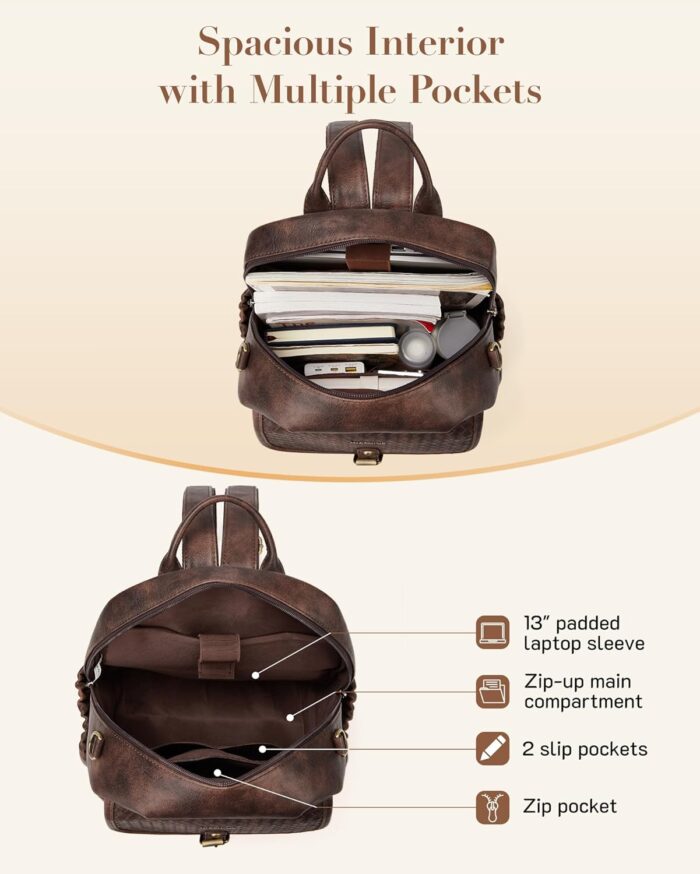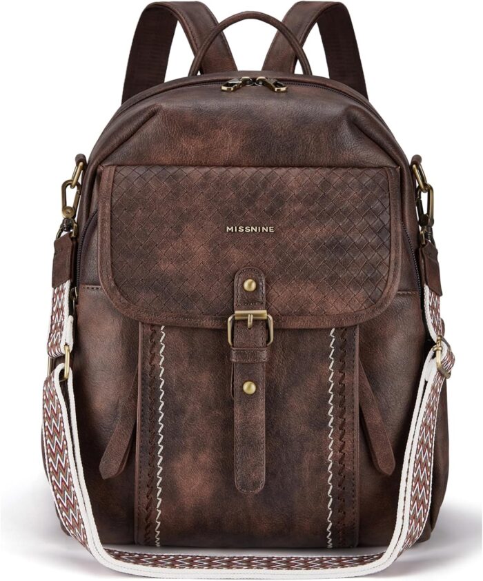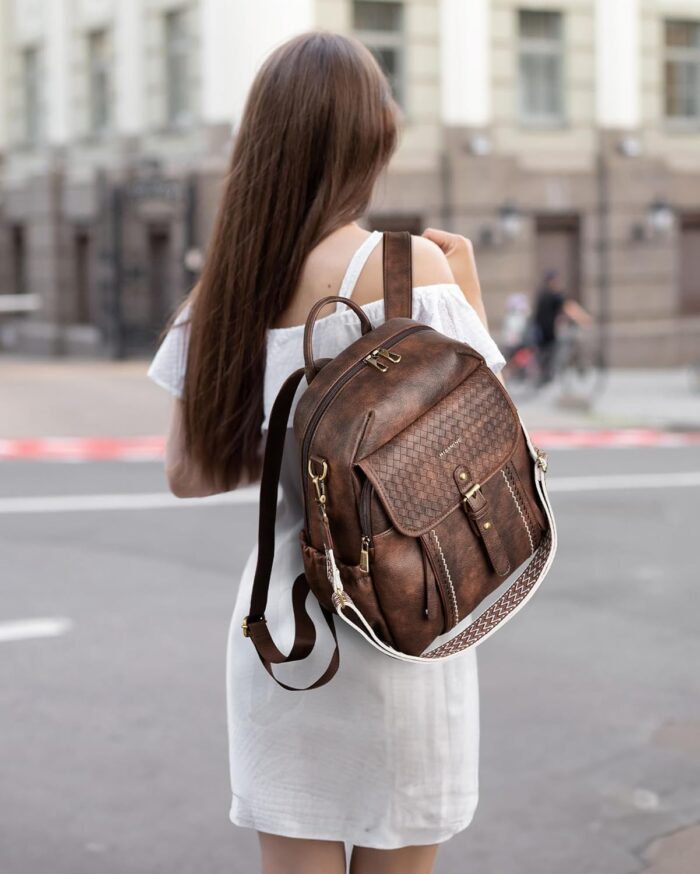 Convenient and Large Capacity: This vintage backpack purse subtly blending classic weaving details with large vertical opening style. Offering style and function, easy to hold your everyday things. Dimensions – 10.5″L x 5.5″W x 14″H, Weight – 2.3 lbs