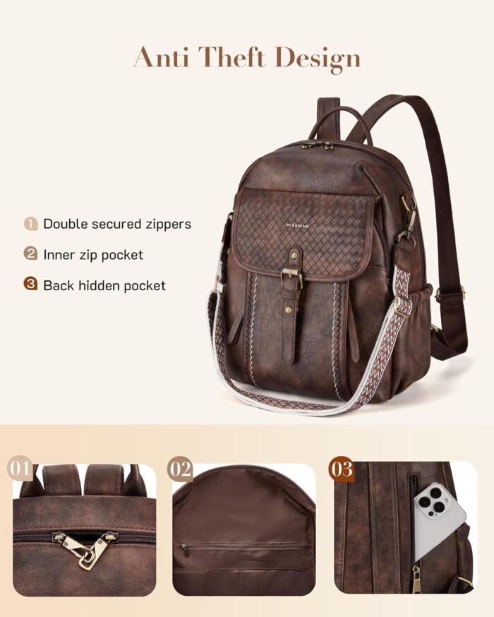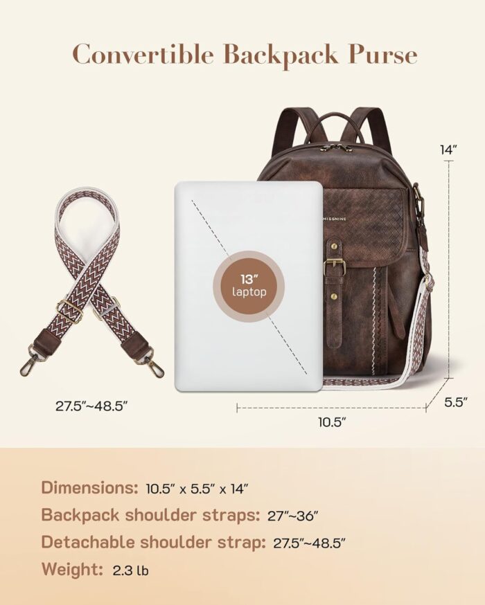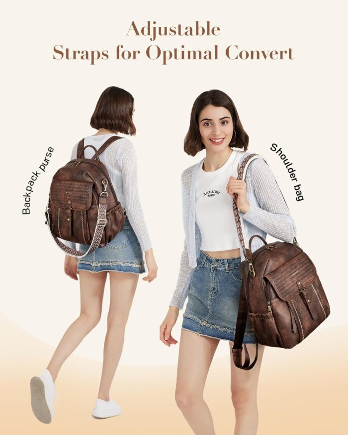 Convertible Backpack: Two types of soft straps for you choose, a detachable guitar strap and adjustable backpack shoulder straps. Suitable for ladies to use as a shoulder bag or leather backpack purse when traveling, dating, working and so on