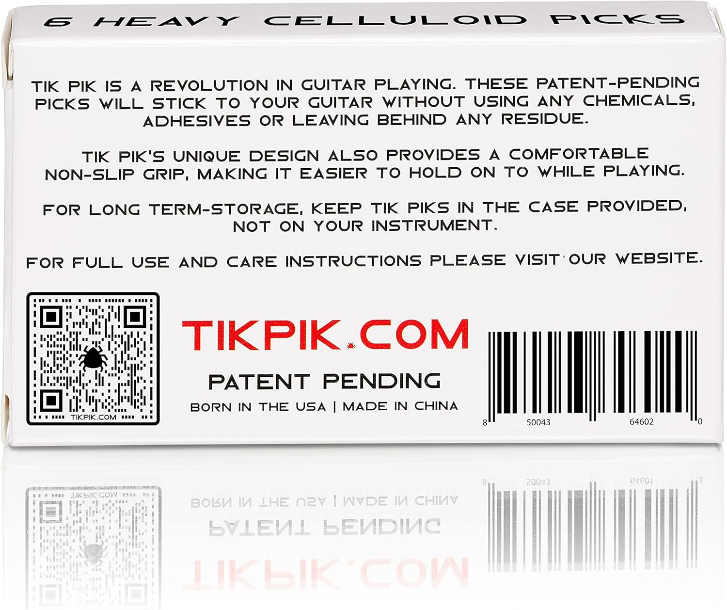 Like magic, TIK PIK sticks to your guitar without using any chemicals, adhesives or leaving behind residue. The unique design also provides a non-slip grip, making it easier to hold while playing.