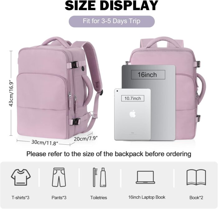 【Innovative Design】The airline-approved backpack stands out with its unique and innovative design. The ergonomic shoulder straps and back panel offer maximum comfort, even during extended wear. The adjustable straps allow you to find the perfect fit for your body, reducing strain on your shoulders and back