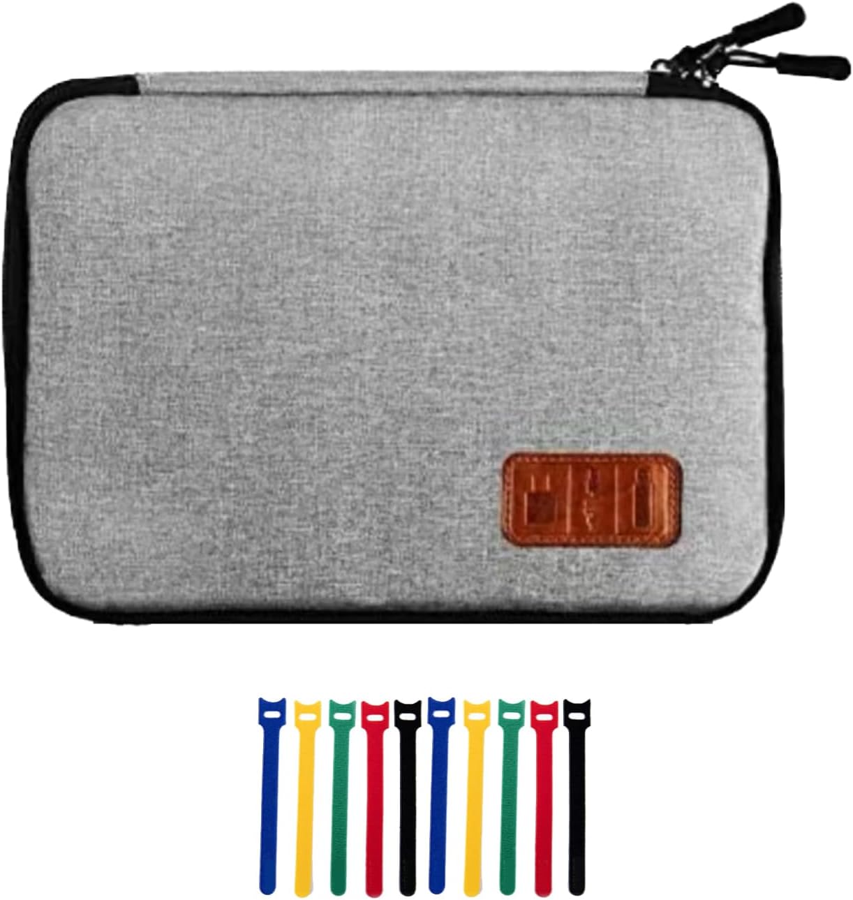 Color: Grey; Size: 9.4 x 6.6 inches( L x W); Weight: 100g; Package includes: 1 x Electronics Accessories Bag,10 x Cable Ties