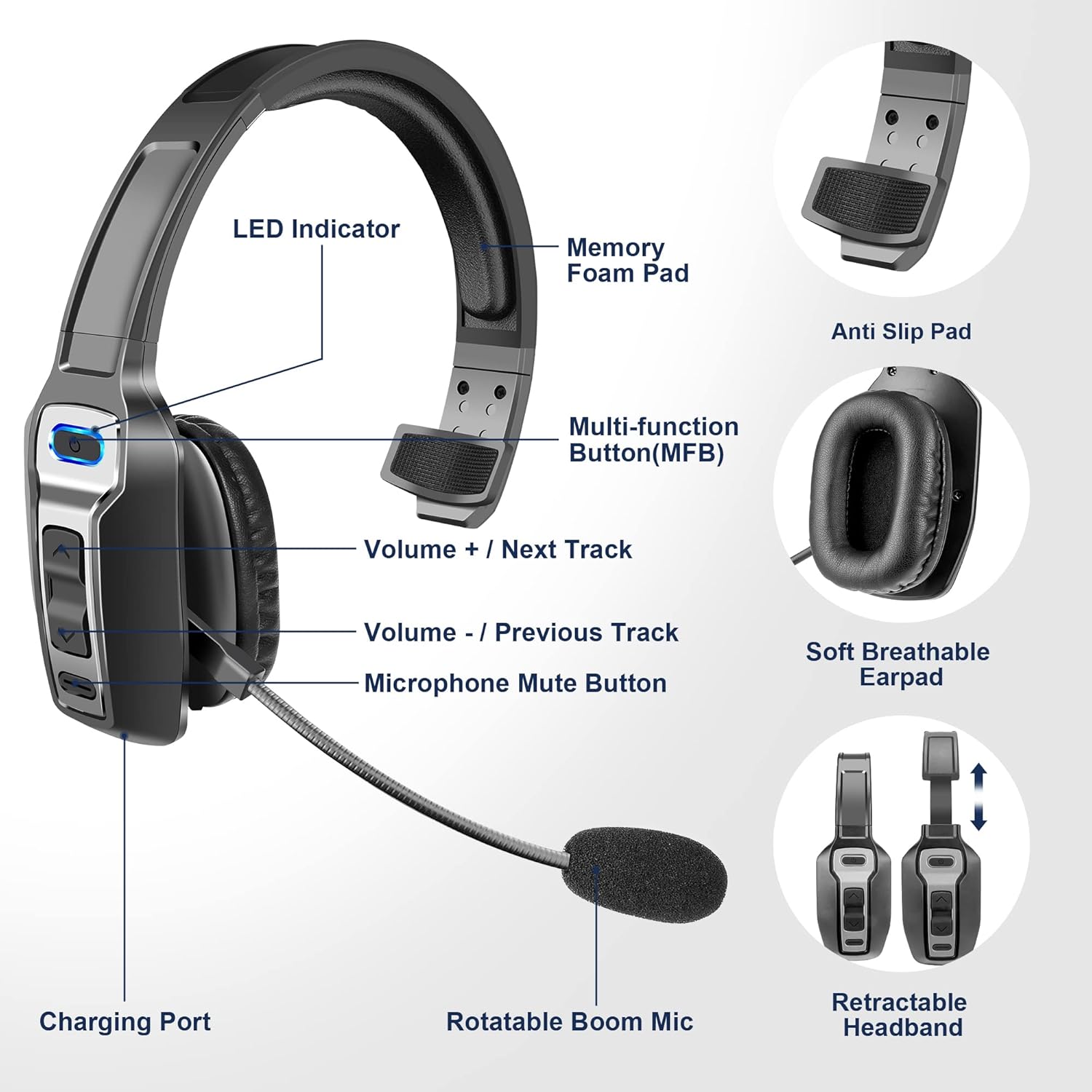 COMFORTABLE TO WEAR: This Bluetooth headset provides you a comfortable wearing experience for intensive all-day use. The soft-cushion ear pad provides a comfortable around-ear fit for all-day listening. You can adjust the headband to the most comfortable size for your head. And the anti-slip pad will prevent the headphone from slipping off of your head.