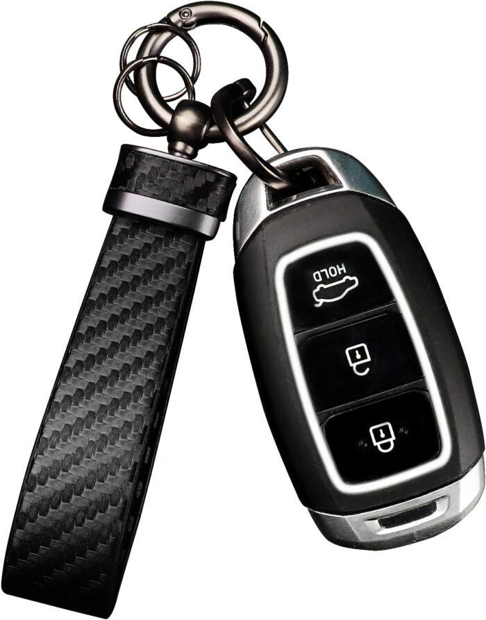 🔑Material: The car key chain is made of genuine leather., carbon fiber sport style, which is good in hand, light and strong, more beautiful and more durable. The key ring is made of zinc alloy., which is beautiful, durable, Can be used with confidence.
