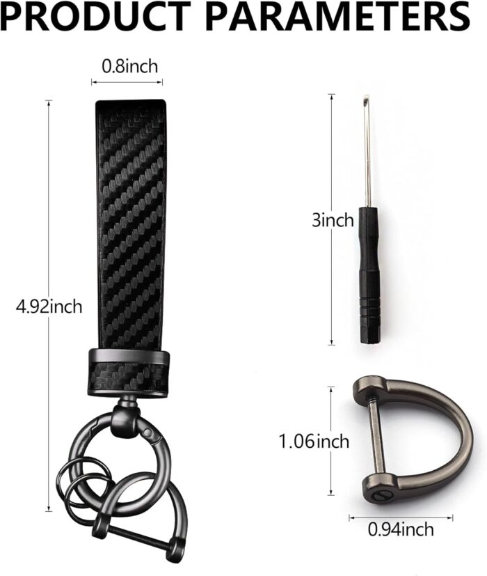 🔑Carbon Fiber Style: The leather carbon fiber design can be hung on the hook, and the keychain hook is curved design, which is convenient to hang on the belt and not easy to hook the corner of the clothes. Quick release spring structure, can be pressed multiple times, not easy to break. Two methods of use can be used flexibly. Bring convenience to your life