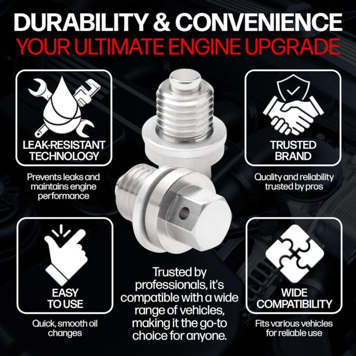 EASY TO INSTALL – Includes an aluminum crush washer for simple installation with a 10mm wrench. Replace the washer with each oil change for optimal performance. The magnet is easy to clean; simply wipe off debris during oil changes. For replacement washers, search B09D552V76. For a tool-free stainless steel oil drain valve, search B092KKZMM8. For our standard oil drain plug, search B0F85R6V98.
